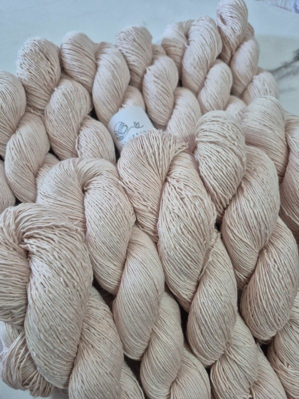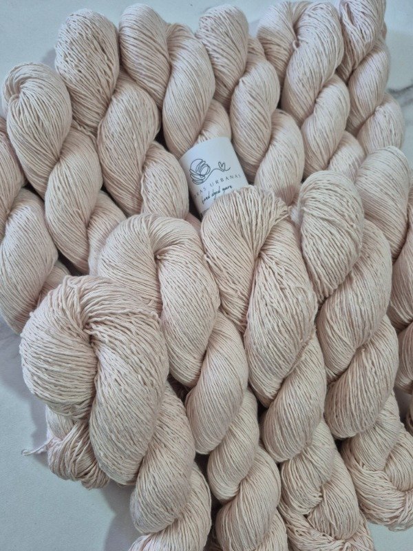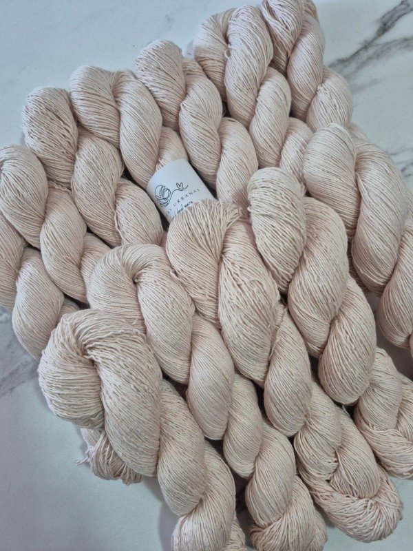Esta base es un blem de 50 % fibra de algodón peinado y 50 % fibra de bamboo . Tiene una mano exquisita. Es fresca y brillos a la vez. El algodón le otorga agarre y te permite fluir en el tejido mientras que el bamboo provee frescura y suntuosidad. Grosor fingering, 430 metros en 100 gramos. Partida tintada con carozos de Palta, tinte natural, modificado con bicarbonato de sodio. Presentacion en madejas de 100 gramos.