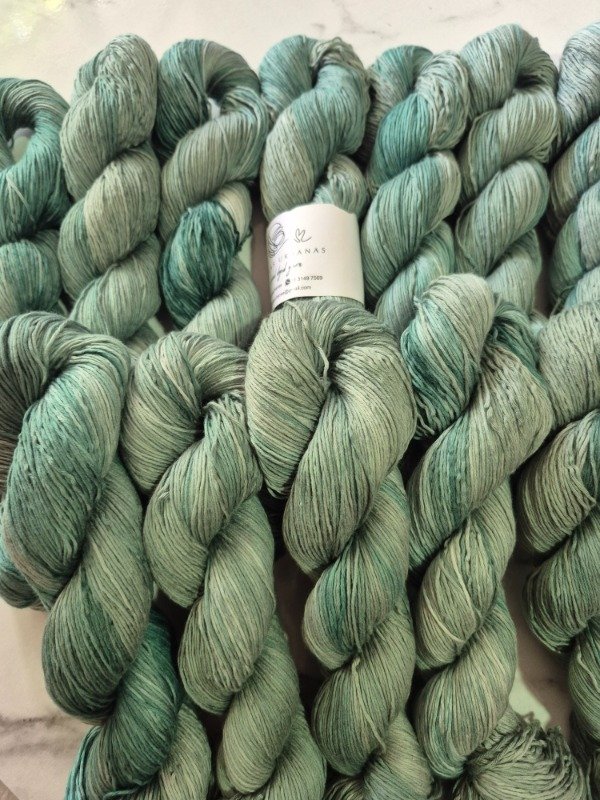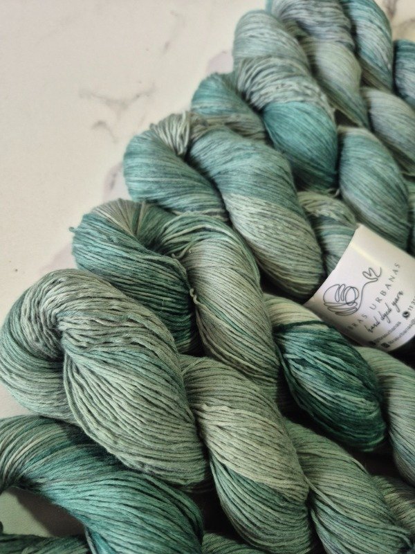 Esta base es un blem de 50 % fibra de algodón peinado y 50 % fibra de bamboo . Tiene una mano exquisita. Es fresca y brillos a la vez. El algodón le otorga agarre y te permite fluir en el tejido mientras que el bamboo provee frescura y suntuosidad. Grosor fingering, 430 metros en 100 gramos. Presentacion en madejas de 100 gramos.
