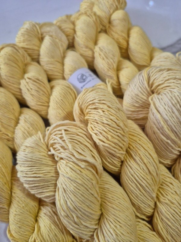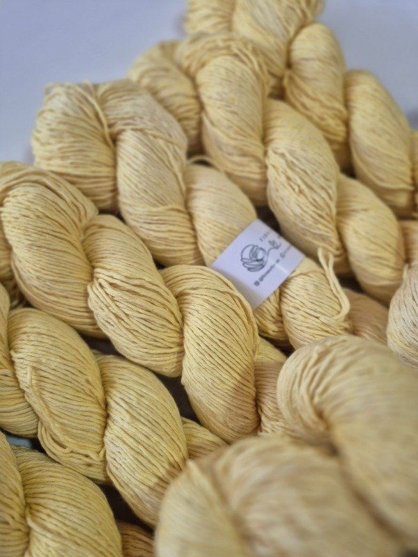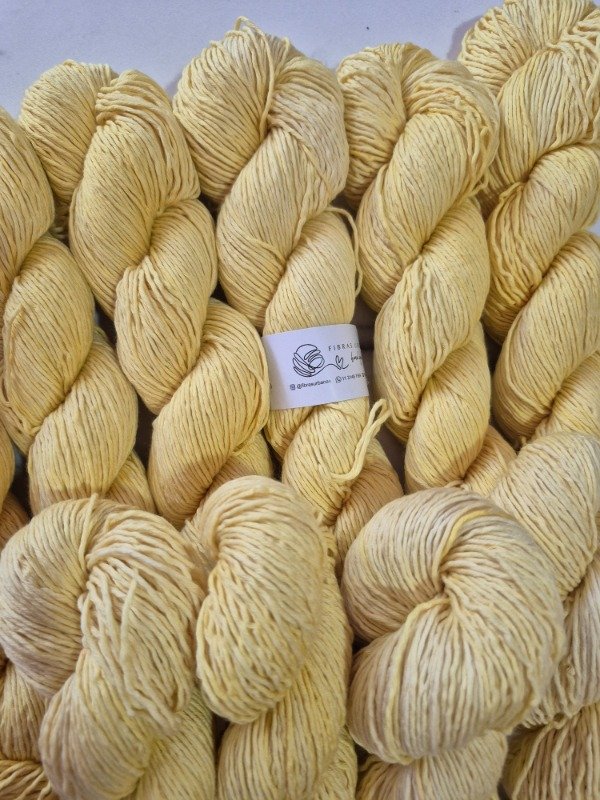 Esta base es un blem de 50 % fibra de algodón peinado y 50 % fibra de bamboo . Tiene una mano exquisita. Es fresca y brillosa a la vez. El algodón le otorga agarre y te permite fluir en el tejido mientras que el bamboo provee frescura, suntuosidad y brillo. Grosor sport 300 metros en 100 gramos.