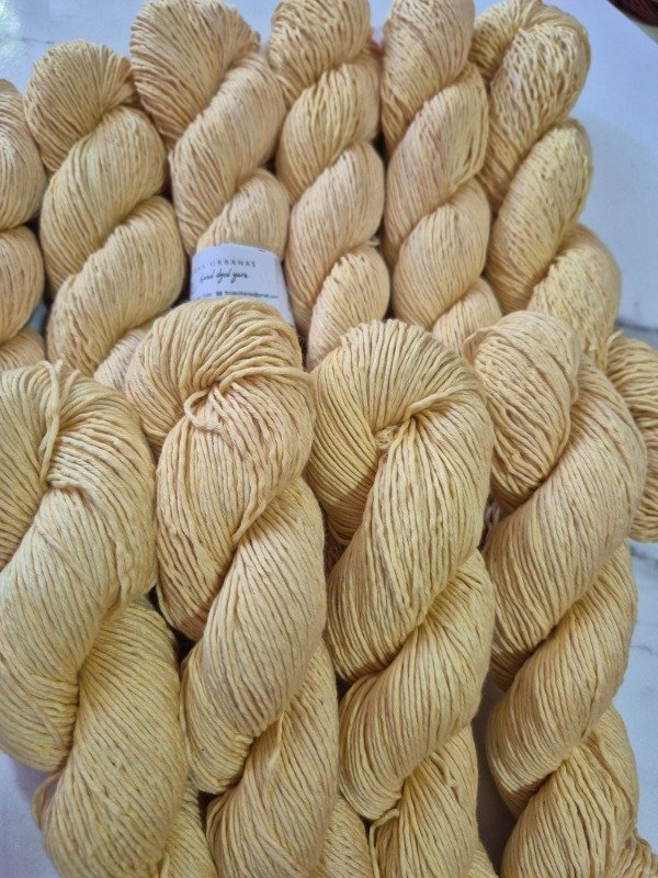 Esta base es un blem de 50 % fibra de algodón peinado y 50 % fibra de bamboo . Tiene una mano exquisita. Es fresca y brillosa a la vez. El algodón le otorga agarre y te permite fluir en el tejido mientras que el bamboo provee frescura, suntuosidad y brillo. Grosor sport 300 metros en 100 gramos.