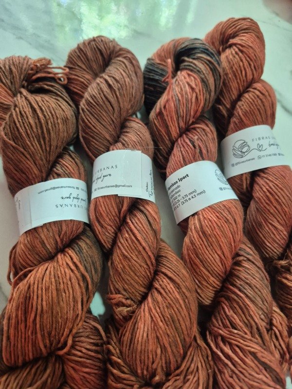 Esta base es un blem de 50 % fibra de algodón peinado y 50 % fibra de bamboo . Tiene una mano exquisita. Es fresca y brillosa a la vez. El algodón le otorga agarre y te permite fluir en el tejido mientras que el bamboo provee frescura, suntuosidad y brillo. Grosor sport 300 metros en 100 gramos.
