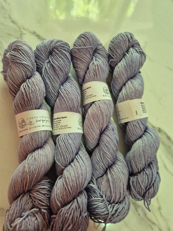 Esta base es un blem de 50 % fibra de algodón peinado y 50 % fibra de bamboo . Tiene una mano exquisita. Es fresca y brillosa a la vez. El algodón le otorga agarre y te permite fluir en el tejido mientras que el bamboo provee frescura, suntuosidad y brillo. Grosor sport 300 metros en 100 gramos.