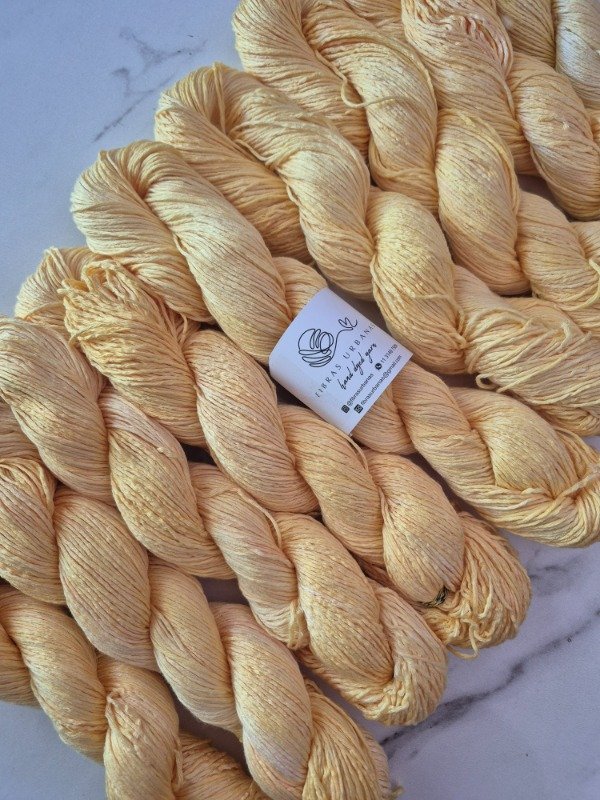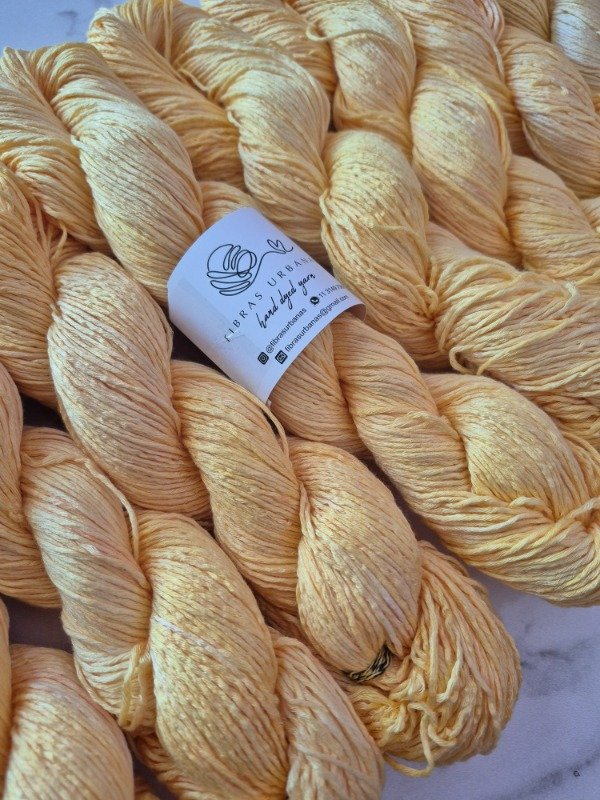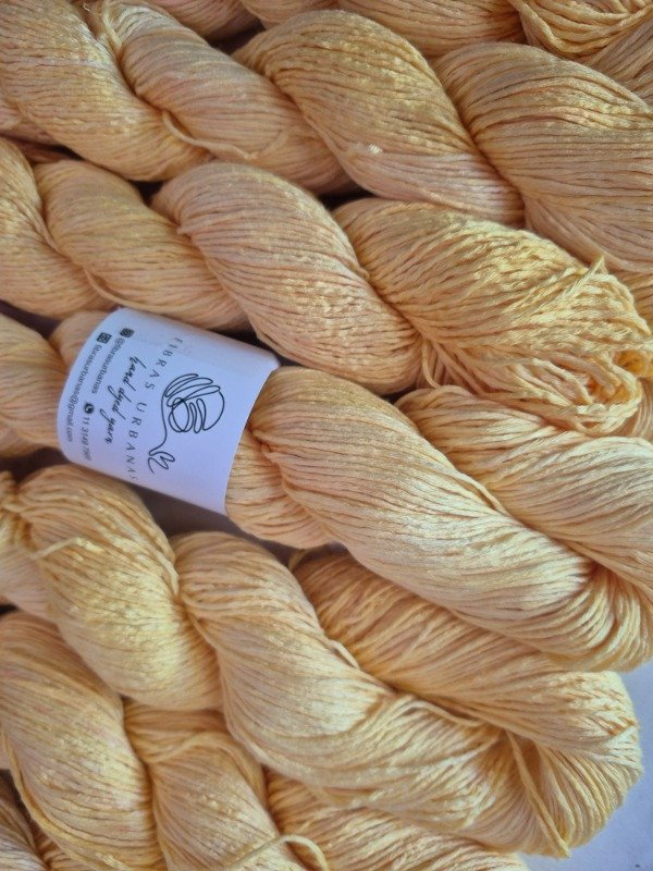Hilado 100 % fibra de bamboo grosor sport. Rinde 300 metros en 100 gramos. El bamboo es una fibra premiun, de alta calidad. Es una fibra suntuosa, de muy buena caída y de gran transpirabilidad. Se destaca por su brillo y suavidad. Además, es respetuosa con el medio ambiente (su produccion insume menos litros que el algodón, por ejemplo), antibacteriana e hipoalergénica. Si vas a tejer bamboo por primera vez te recomiendo bajar el calibre de tus agujas ya sea de tricot o crochet ya que su contenido celulósico hace que estire por su propio peso. Y que tengas también esto en cuenta al estimar el largo de tus prendas. En fin si tejes tu prendas con facilidad negativa va a estirar con el uso pero te quedará al cuerpo. Espero te sirvan mis tips.