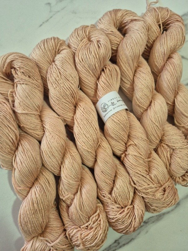 Hilado 100 % fibra de bamboo grosor sport. Rinde 300 metros en 100 gramos. El bamboo es una fibra premiun, de alta calidad. Es una fibra suntuosa, de muy buena caída y de gran transpirabilidad. Se destaca por su brillo y suavidad. Además, es respetuosa con el medio ambiente (su produccion insume menos litros que el algodón, por ejemplo), antibacteriana e hipoalergénica. Si vas a tejer bamboo por primera vez te recomiendo bajar el calibre de tus agujas ya sea de tricot o crochet ya que su contenido celulósico hace que estire por su propio peso. Y que tengas también esto en cuenta al estimar el largo de tus prendas. En fin si tejes tu prendas con facilidad negativa va a estirar con el uso pero te quedará al cuerpo. Espero te sirvan mis tips.