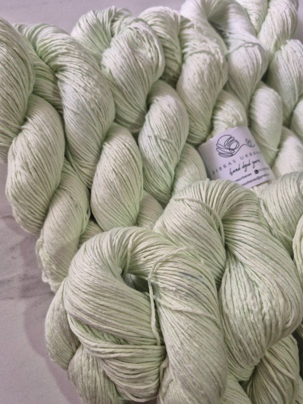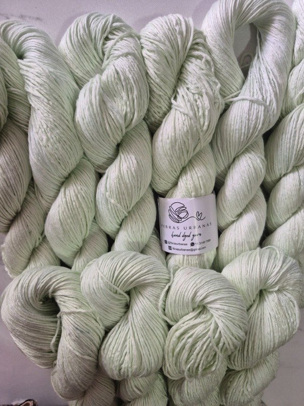 Hilado 100 % fibra de bamboo grosor sport. Rinde 300 metros en 100 gramos. El bamboo es una fibra premiun, de alta calidad. Es una fibra suntuosa, de muy buena caída y de gran transpirabilidad. Se destaca por su brillo y suavidad. Además, es respetuosa con el medio ambiente (su produccion insume menos litros que el algodón, por ejemplo), antibacteriana e hipoalergénica. Si vas a tejer bamboo por primera vez te recomiendo bajar el calibre de tus agujas ya sea de tricot o crochet ya que su contenido celulósico hace que estire por su propio peso. Y que tengas también esto en cuenta al estimar el largo de tus prendas. En fin si tejes tu prendas con facilidad negativa va a estirar con el uso pero te quedará al cuerpo. Espero te sirvan mis tips.