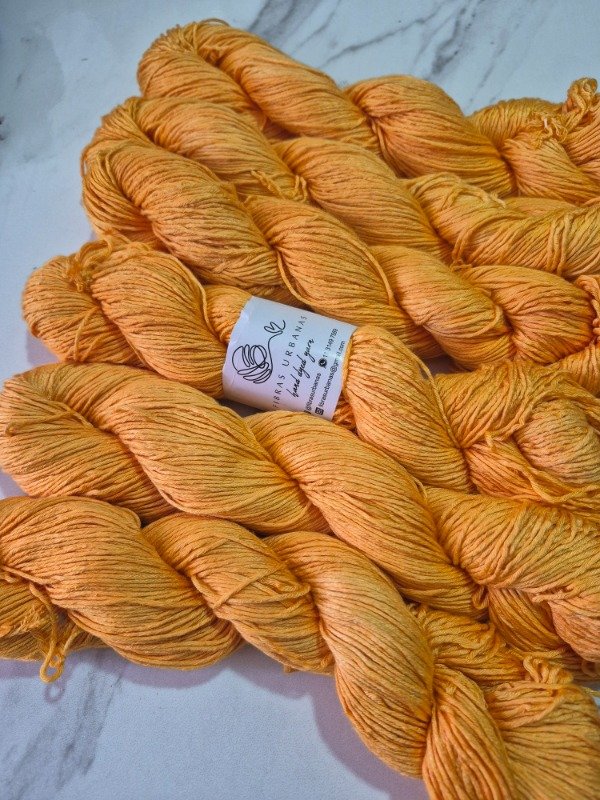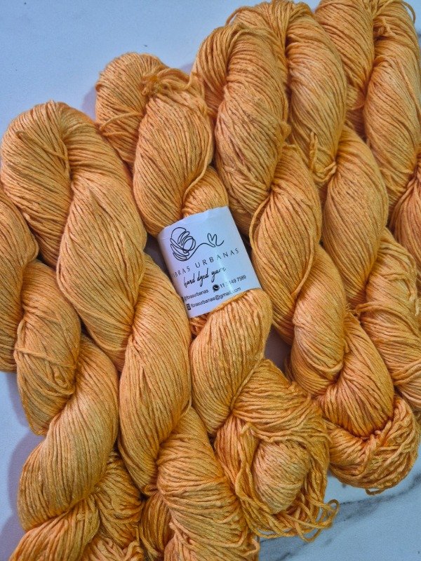 Hilado 100 % fibra de bamboo grosor sport. Rinde 300 metros en 100 gramos. El bamboo es una fibra premiun, de alta calidad. Es una fibra suntuosa, de muy buena caída y de gran transpirabilidad. Se destaca por su brillo y suavidad. Además, es respetuosa con el medio ambiente (su produccion insume menos litros que el algodón, por ejemplo), antibacteriana e hipoalergénica. Si vas a tejer bamboo por primera vez te recomiendo bajar el calibre de tus agujas ya sea de tricot o crochet ya que su contenido celulósico hace que estire por su propio peso. Y que tengas también esto en cuenta al estimar el largo de tus prendas. En fin si tejes tu prendas con facilidad negativa va a estirar con el uso pero te quedará al cuerpo. Espero te sirvan mis tips.