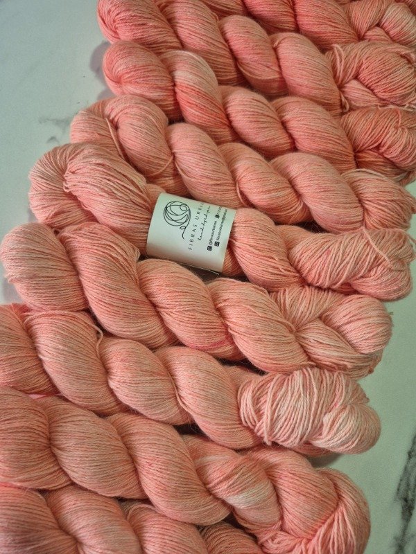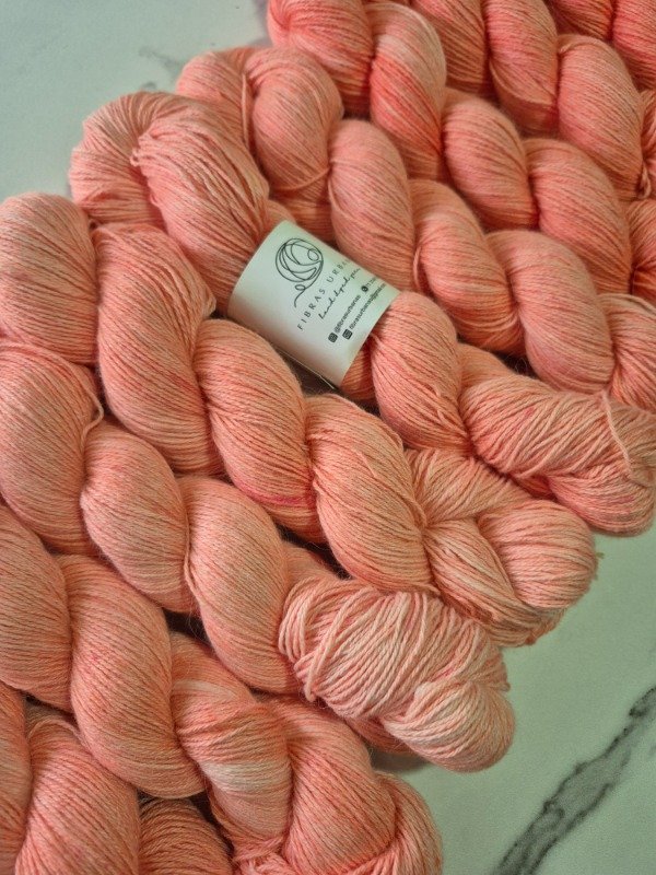 Esta es una base de media estación, extremadamente suave al tacto y con cierto brillo y caída, propio de la mezcla con fibra de viscosa. Es un blend cÑompuesto por 30% de pelo de conejo de angora, 40% fibra de viscosa, y 30 % de poliamida que le otorga elasticidad, suavidad y durabilidad. Es una de mis fibras preferidas a la hora de teñir por la manera como toman los colores. El grosor fingering tiene un excelente rendimiento, 433 metros en 100 gramos. Puede tejerse con agujas desde 2.5 a 3 m, llegando a 3.5 mm en caso de calados. Precio por madeja de 100 gramos.