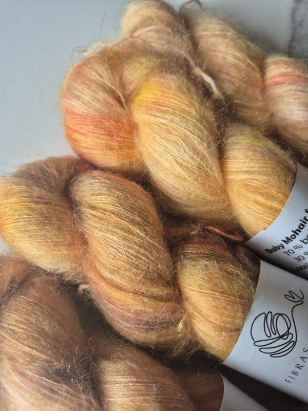 Esta base es 70 % mohair baby y 30 % seda. No puedo decirte lo suave que es. Tenes que sentirla. Es una nube. Suave, cálida, vaporosa.
