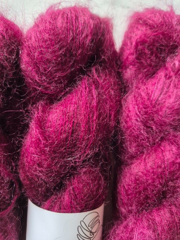 Esta base es 70 % mohair baby y 30 % seda. No puedo decirte lo suave que es. Tenes que sentirla. Es una nube. Suave, cálida, vaporosa.