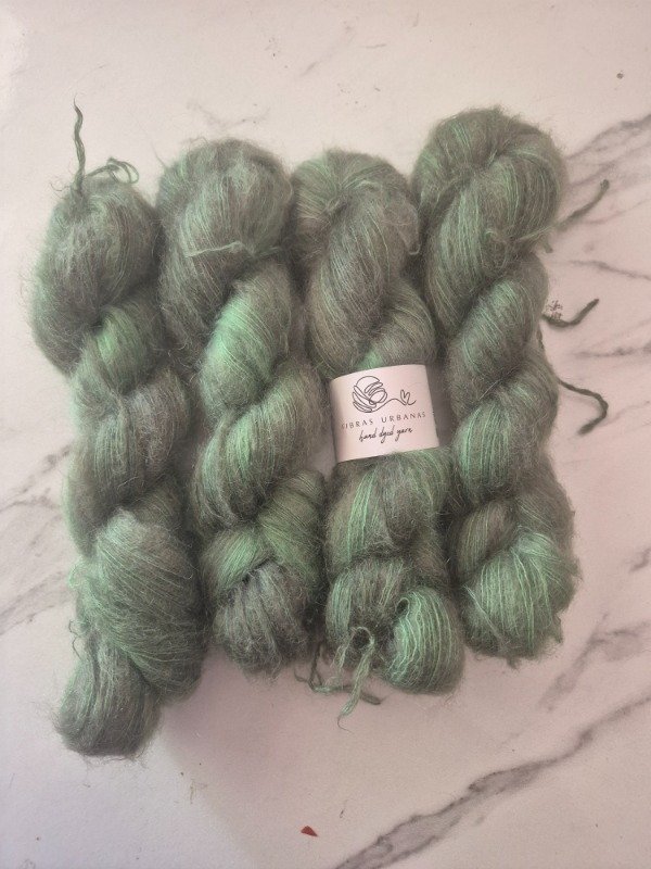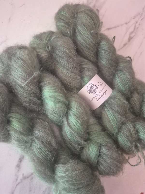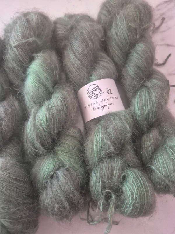 Puede tejerse sola con agujas 4 o 4.5 mm. Puede tejerse acompañada de un merino lace o un merino fingering y en ese caso te recomiendo usar agujas 5 (con lace) 6 o 7 mm (con fingering) según tu tensión. Recordá siempre que para un resultado óptimo el mohair necesita espacio para que el pelo ocupe lugar y se expanda por eso te recomiendo hacer muestra hasta obtener la tela que mejor se acomode a tu gusto.