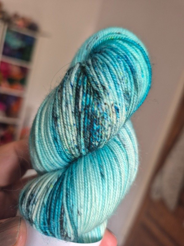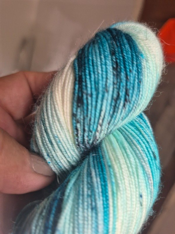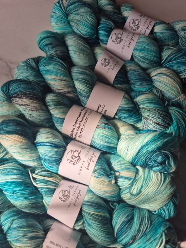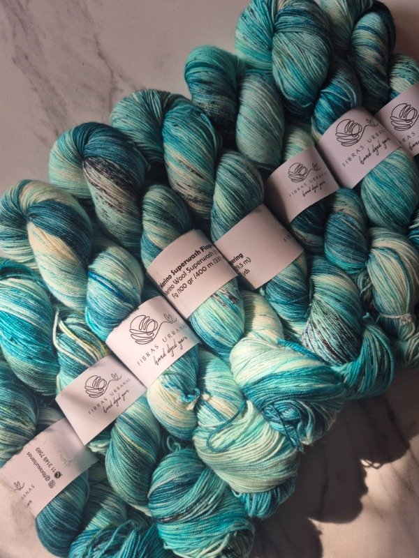 Esta base es un merino superwash fingering de 19 micras. Rinde 400 metros en 100 gramos. Me encanta teñirte por como resaltan los colores. Presentacion en madejas de 100 gramos.