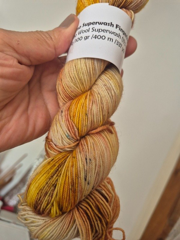 Esta base es un merino superwash fingering de 19 micras. Rinde 400 metros en 100 gramos. Me encanta teñir esta base por como resaltan los colores. Presentacion en madejas de 100 gramos.