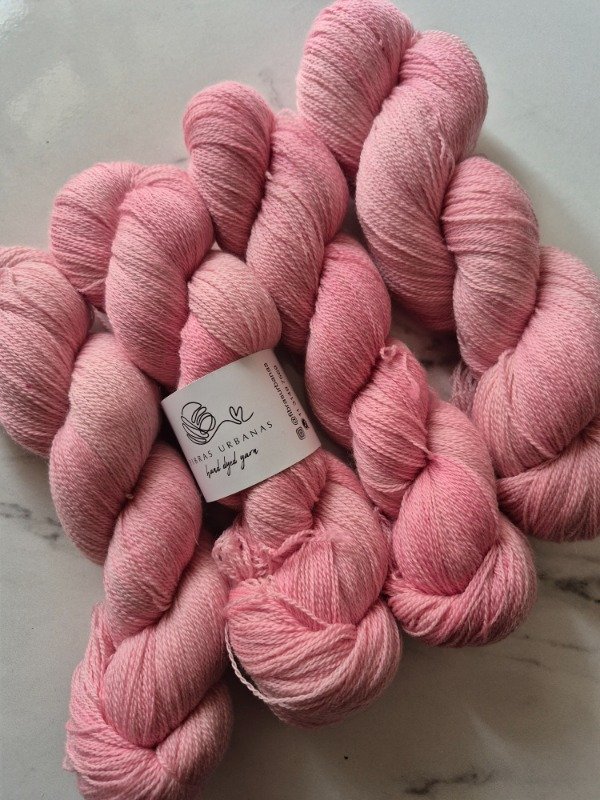 Es un merino superwash de 19, 5 micras. El grosor lace tiene un rendimiento de 800 metros en 100 gramos. Podes tejerla en proyectos acompañando un mohair lace con agujas 5 mm. Presentacion madejas de 100 gramos.