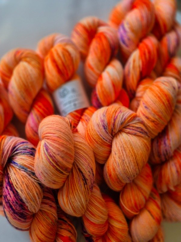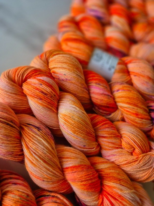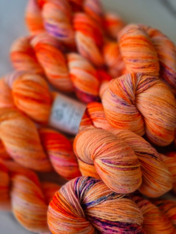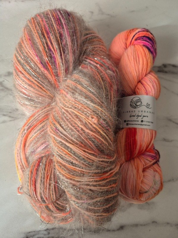 Esta base es un merino patagónico de 20 micras, muy suave. Puede ser usado en contacto con la piel como primera capa. El grosor fingering rinde 430 metros en 100 gramos. Esta suavemente torsionado en tres cabos. Puede ser tejido sólo con agujas 3 a 3.5 mm o acompañando otra fibra, como el mohair, con agujas 6 a 8 mm según tu tensión y el efecto que quieras lograr.