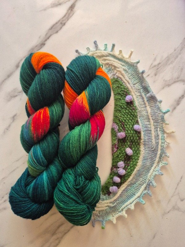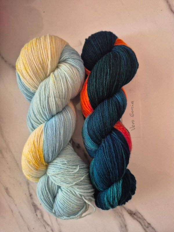 Esta base es un merino patagónico de 20 micras, muy suave. Puede ser usado en contacto con la piel como primera capa. El grosor fingering rinde 430 metros en 100 gramos. Esta suavemente torsionado en tres cabos. Puede ser tejido sólo con agujas 3 a 3.5 mm o acompañando otra fibra, como el mohair, con agujas 6 a 8 mm según tu tensión y el efecto que quieras lograr. Las madejas de Punto Asignado son madejas teñidas una por una. Pueden ser de colores contrastantes o no, pueden tener speckles o no... pero siempre vas a encontrar un tramo largo de un color, un aviso, un tramo corto de otro color. Cuando llega el aviso te preparas para el cambio de color. Lo realizas cuando llega el otro color. Podes tejer libre o seguir un patrón. Que seas feliz tejiendo. Si queres experimentar con esta técnica @cecipaterno tiene en su tienda el chal Peperina.