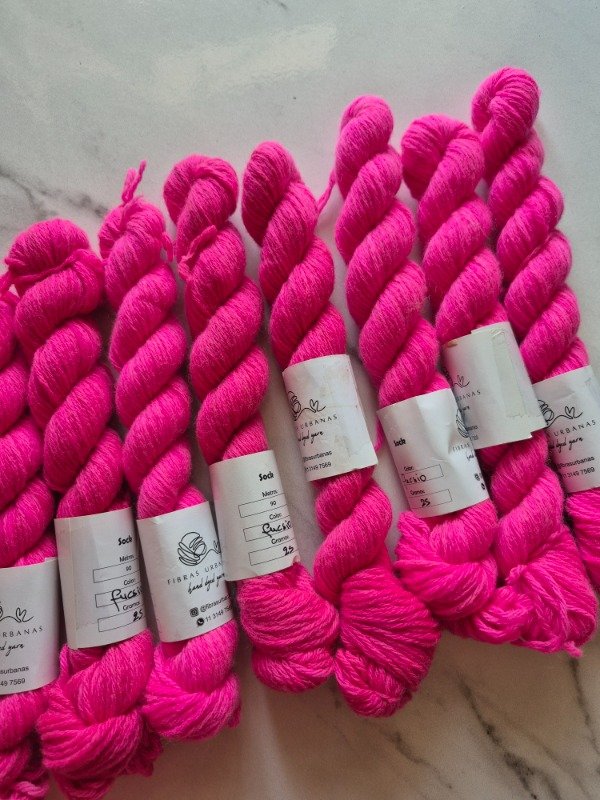 Es una mini madeja de hilado sock, de 25 gramos. Rinde 94 metros. Ideal para punteras, talones y elásticos de tus medias. O para usar en técnicas de colorwork. Si llevas dos mini madejas te alcanza para un par de medias hasta talle 39. Si acompañas dos mini madejas con una tercera a contratono podrías tejer con este efecto punteras, talones y elásticos y de paso realizar la caña más alta.