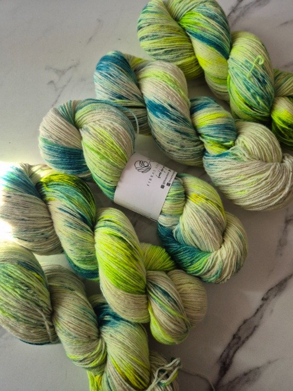 Esta nueva base que te recomiendo para medias es 85 % merino patagónico y 15 % nylón. Rinde 466 metros en 100 gramos. Es decir es una light fingering. Podes tejerla con agujas desde 2.25 mm a 3 mm según tu tensión. A mi particularmente, me gustó mucho para colorwork, con agujas desde 3.5 a 4 mm. Es muy rendidora, suave y esponjosa. Espero la disfrutes mucho.