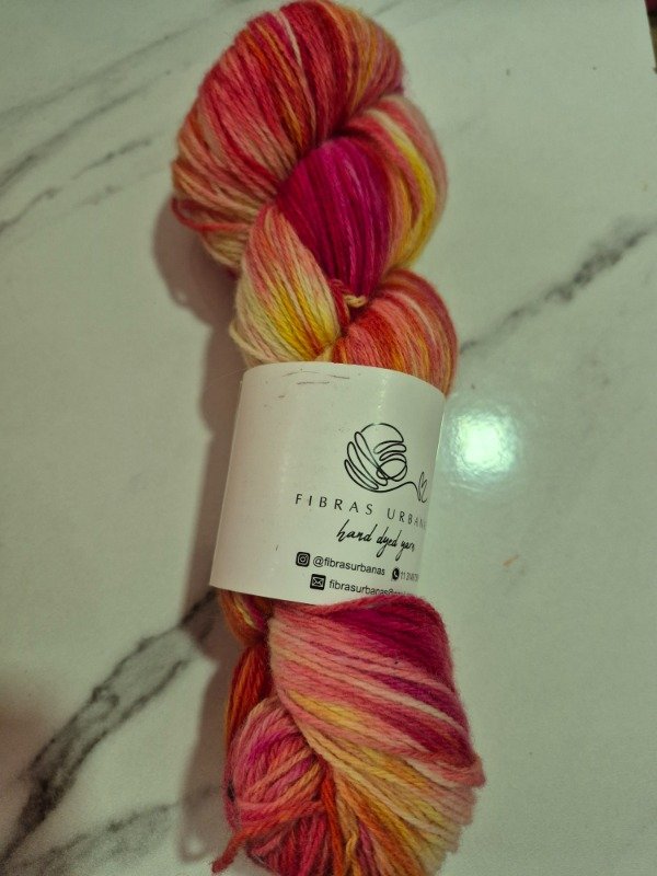 Esta nueva base que te recomiendo para medias es 85 % merino patagónico y 15 % nylón. Rinde 466 metros en 100 gramos. Es decir es una light fingering. Podes tejerla con agujas desde 2.25 mm a 3 mm según tu tensión. A mi particularmente, me gustó mucho para colorwork, con agujas desde 3.5 a 4 mm. Es muy rendidora, suave y esponjosa. Espero la disfrutes mucho.