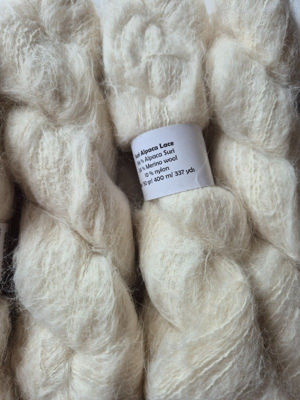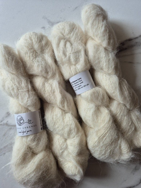Es una fibra suave, suavicima, aireada, vaporosa y delicada. Es tan bella que no voy a teñirla, solo disponible en su color natural.