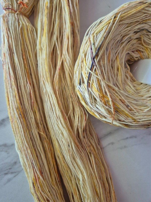 Esta base de algodón premiun, peinado, es un título 8/3, de 450 metros en 100 gramos. Extremadamente suave al tacto ya que se trata de fibra peinada. Es ideal para tejer prendas aireadas y vaporosas para la temporada primavera verano, tanto en tricot como en crochet. Te recomiendo tejer con grosores que van del 2.5 mm a 3 o 3.50 mm .