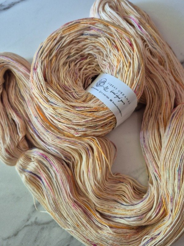 Esta base de algodón premiun, peinado, es un título 8/3, de 450 metros en 100 gramos. Extremadamente suave al tacto ya que se trata de fibra peinada. Es ideal para tejer prendas aireadas y vaporosas para la temporada primavera verano, tanto en tricot como en crochet. Te recomiendo tejer con grosores que van del 2.5 mm a 3 o 3.50 mm .