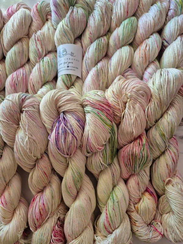 Hilado 100 % fibra de bamboo grosor sport. Rinde 300 metros en 100 gramos. El bamboo es una fibra premiun, de alta calidad. Es una fibra suntuosa, de muy buena caída y de gran transpirabilidad. Se destaca por su brillo y suavidad. Además, es respetuosa con el medio ambiente (su produccion insume menos litros que el algodón, por ejemplo), antibacteriana e hipoalergénica. Si vas a tejer bamboo por primera vez te recomiendo bajar el calibre de tus agujas ya sea de tricot o crochet ya que su contenido celulósico hace que estire por su propio peso. Y que tengas también esto en cuenta al estimar el largo de tus prendas. En fin si tejes tu prendas con facilidad negativa va a estirar con el uso pero te quedará al cuerpo. Espero te sirvan mis tips.