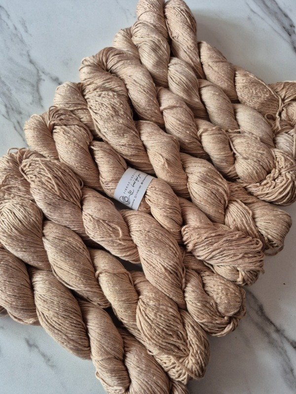 Hilado 100 % fibra de bamboo grosor sport. Rinde 300 metros en 100 gramos. El bamboo es una fibra premiun, de alta calidad. Es una fibra suntuosa, de muy buena caída y de gran transpirabilidad. Se destaca por su brillo y suavidad. Además, es respetuosa con el medio ambiente (su produccion insume menos litros que el algodón, por ejemplo), antibacteriana e hipoalergénica. Si vas a tejer bamboo por primera vez te recomiendo bajar el calibre de tus agujas ya sea de tricot o crochet ya que su contenido celulósico hace que estire por su propio peso. Y que tengas también esto en cuenta al estimar el largo de tus prendas. En fin si tejes tu prendas con facilidad negativa va a estirar con el uso pero te quedará al cuerpo. Espero te sirvan mis tips.