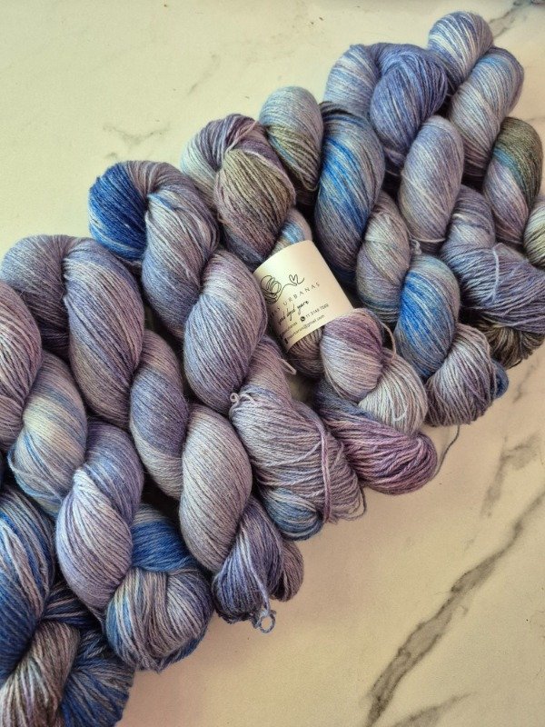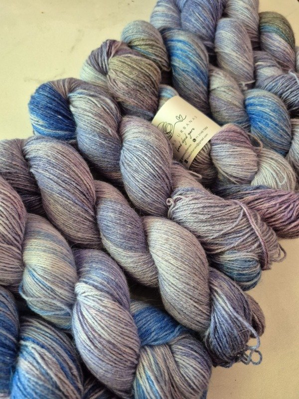 Esta es una base de media estación, extremadamente suave al tacto y con cierto brillo y caída, propio de la mezcla con fibra de viscosa. Es un blend cÑompuesto por 30% de pelo de conejo de angora, 40% fibra de viscosa, y 30 % de poliamida que le otorga elasticidad, suavidad y durabilidad. Es una de mis fibras preferidas a la hora de teñir por la manera como toman los colores. El grosor fingering tiene un excelente rendimiento, 433 metros en 100 gramos. Puede tejerse con agujas desde 2.5 a 3 m, llegando a 3.5 mm en caso de calados. Precio por madeja de 100 gramos.