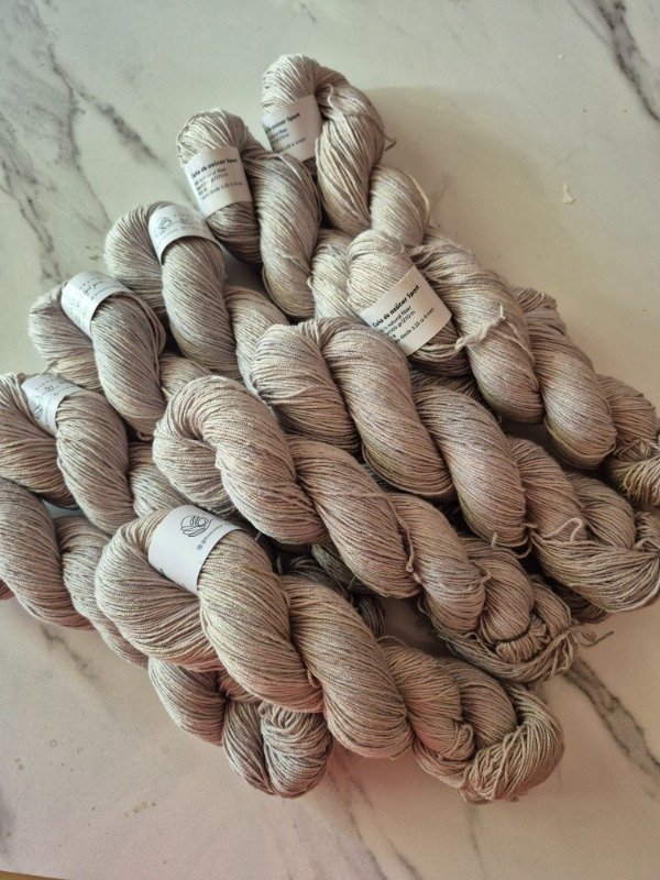 Esta base es un hilado 100 % de fibra celulósica. De grosor sport. Rinde 270 metros en 100 gramos. Es una base compuesta de 7 cabos y tiene 18 wpi. Puede ser tejido con agujas desde 2.50 mm o 3 mm a 3.50 mm. Es un hilado sumamente fresco, para prendas livianas de pleno verano. Precio por madejas de 100 gramos.