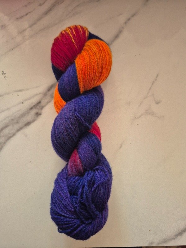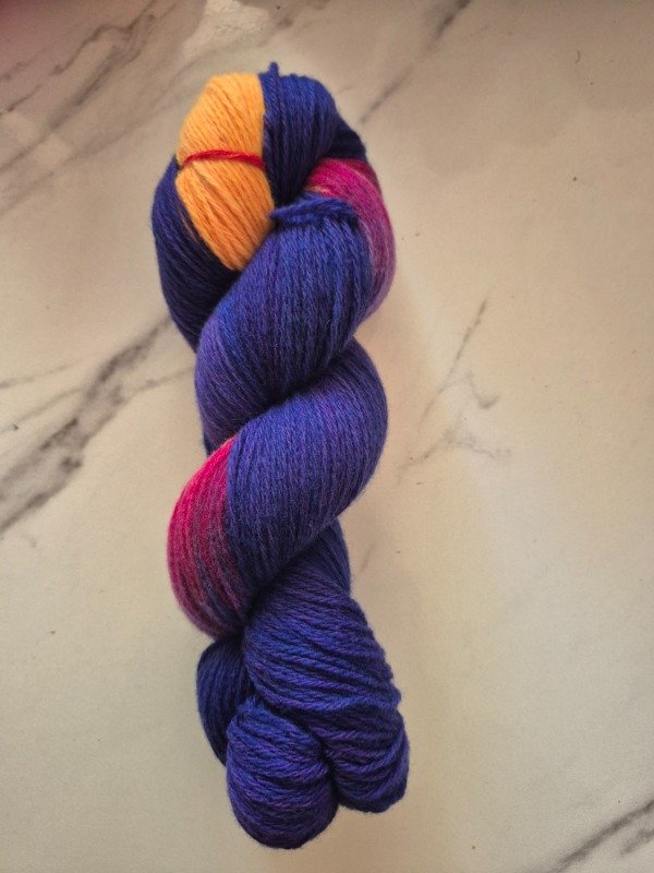 Esta base es un merino patagónico de 20 micras, muy suave. Puede ser usado en contacto con la piel como primera capa. El grosor fingering rinde 430 metros en 100 gramos. Esta suavemente torsionado en tres cabos. Puede ser tejido sólo con agujas 3 a 3.5 mm o acompañando otra fibra, como el mohair, con agujas 6 a 8 mm según tu tensión y el efecto que quieras lograr. Las madejas de Punto Asignado son madejas teñidas una por una. Pueden ser de colores contrastantes o no, pueden tener speckles o no... pero siempre vas a encontrar un tramo largo de un color, un aviso, un tramo corto de otro color. Cuando llega el aviso te preparas para el cambio de color. Lo realizas cuando llega el otro color. Podes tejer libre o seguir un patrón. Que seas feliz tejiendo. Si queres experimentar con esta técnica @cecipaterno tiene en su tienda el chal Peperina.