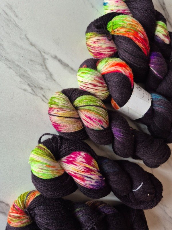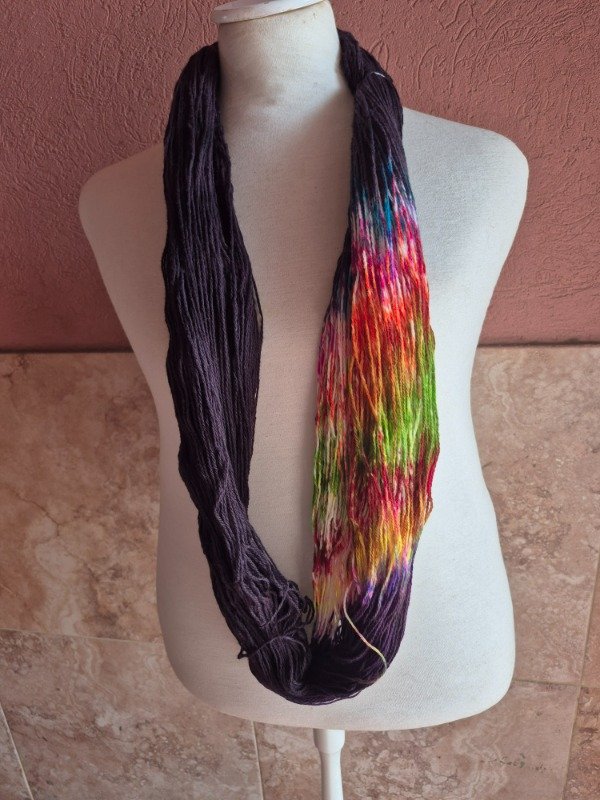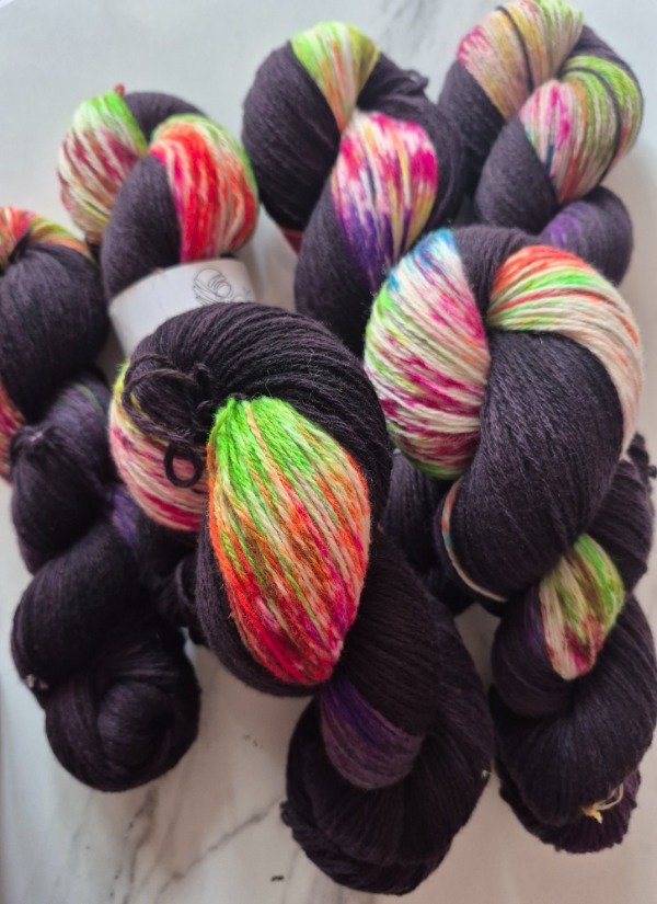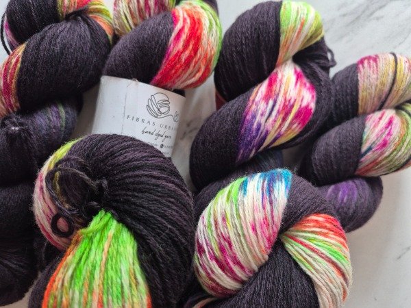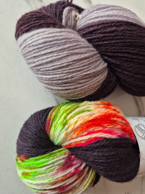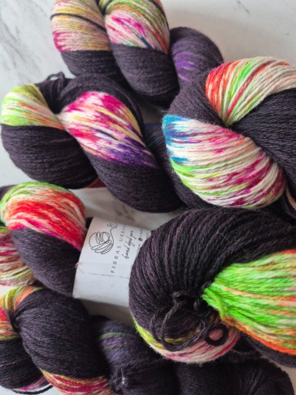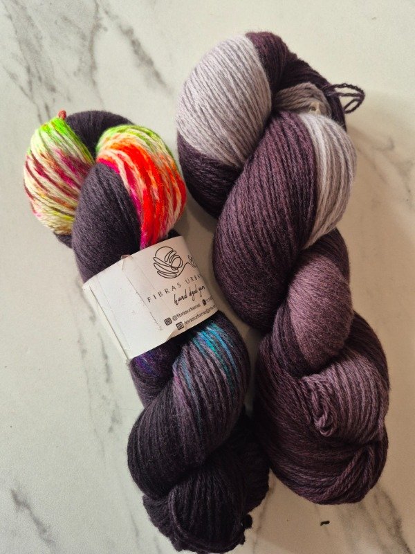 Esta base es un merino patagónico de 20 micras, muy suave. Puede ser usado en contacto con la piel como primera capa. El grosor fingering rinde 430 metros en 100 gramos. Esta suavemente torsionado en tres cabos. Puede ser tejido sólo con agujas 3 a 3.5 mm o acompañando otra fibra, como el mohair, con agujas 6 a 8 mm según tu tensión y el efecto que quieras lograr. Las madejas de Punto Asignado son madejas teñidas una por una. Pueden ser de colores contrastantes o no, pueden tener speckles o no... pero siempre vas a encontrar un tramo largo de un color, un aviso, un tramo corto de otro color. Cuando llega el aviso te preparas para el cambio de color. Lo realizas cuando llega el otro color. Podes tejer libre o seguir un patrón. Que seas feliz tejiendo. Si queres experimentar con esta técnica @cecipaterno tiene en su tienda el chal Peperina.