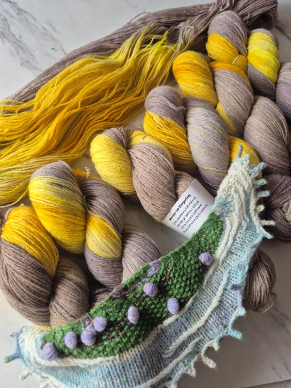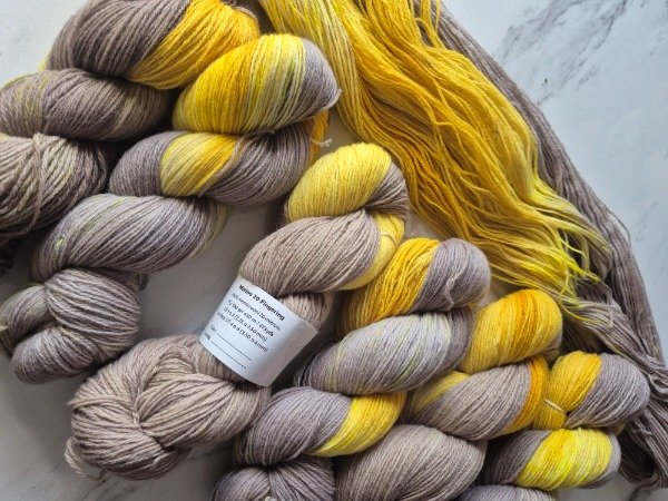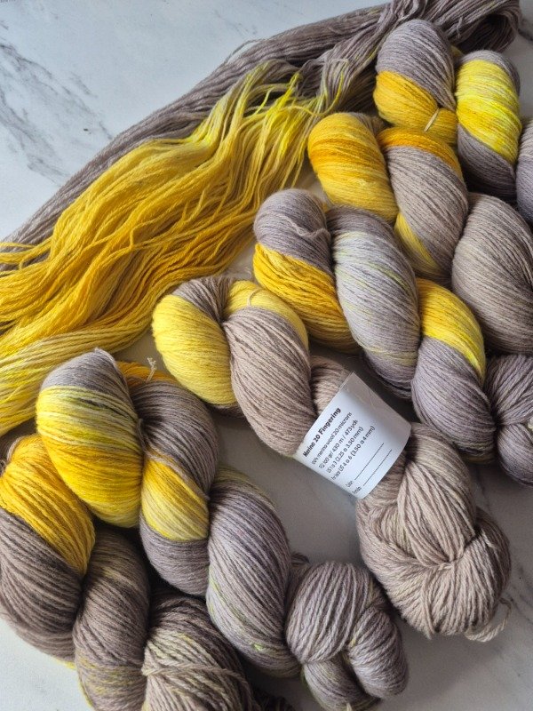 Esta base es un merino patagónico de 20 micras, muy suave. Puede ser usado en contacto con la piel como primera capa. El grosor fingering rinde 430 metros en 100 gramos. Esta suavemente torsionado en tres cabos. Puede ser tejido sólo con agujas 3 a 3.5 mm o acompañando otra fibra, como el mohair, con agujas 6 a 8 mm según tu tensión y el efecto que quieras lograr. Las madejas de Punto Asignado son madejas teñidas una por una. Pueden ser de colores contrastantes o no, pueden tener speckles o no... pero siempre vas a encontrar un tramo largo de un color, un aviso, un tramo corto de otro color. Cuando llega el aviso te preparas para el cambio de color. Lo realizas cuando llega el otro color. Podes tejer libre o seguir un patrón. Que seas feliz tejiendo. Si queres experimentar con esta técnica @cecipaterno tiene en su tienda el chal Peperina.
