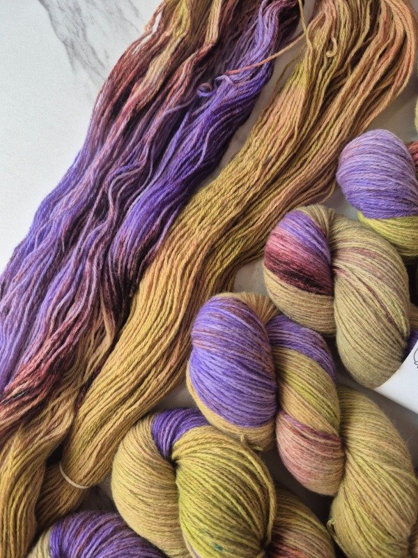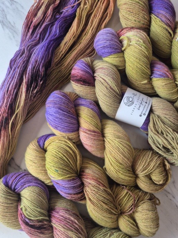 Esta base es un merino patagónico de 20 micras, muy suave. Puede ser usado en contacto con la piel como primera capa. El grosor fingering rinde 430 metros en 100 gramos. Esta suavemente torsionado en tres cabos. Puede ser tejido sólo con agujas 3 a 3.5 mm o acompañando otra fibra, como el mohair, con agujas 6 a 8 mm según tu tensión y el efecto que quieras lograr. Las madejas de Punto Asignado son madejas teñidas una por una. Pueden ser de colores contrastantes o no, pueden tener speckles o no... pero siempre vas a encontrar un tramo largo de un color, un aviso, un tramo corto de otro color. Cuando llega el aviso te preparas para el cambio de color. Lo realizas cuando llega el otro color. Podes tejer libre o seguir un patrón. Que seas feliz tejiendo. Si queres experimentar con esta técnica @cecipaterno tiene en su tienda el chal Peperina.