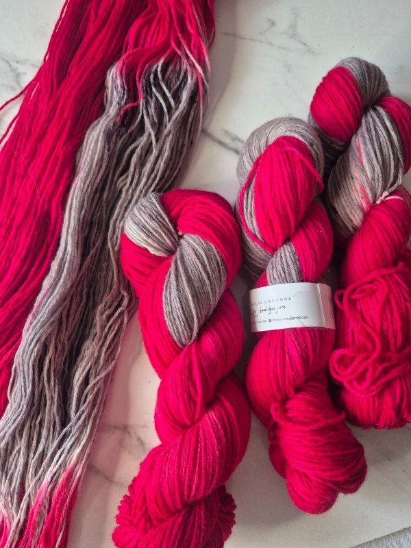 Urbana socks es una base pensada para medias o para tus sweaters en colorwork, es una base 85 % merino patagónico muy suave, extraído de la primera esquila de las ovejas merino, y 15% de nylón. Es 4 PLY, es decir 4 cabos, grosor fingering, 350 metros en 100 gramos. Presentacion de madeja de 100 gramos. Esta madeja es una madeja de Punto asignado. Las madejas de Punto Asignado son madejas teñidas una por una. Pueden ser de colores contrastantes o no, pueden tener speckles o no... pero siempre vas a encontrar un tramo largo de un color, un aviso, un tramo corto de otro color. Cuando llega el aviso te preparas para el cambio de color. Cuando llega el tramo corto podes tejer un Popcorn, o punto garbanzo, o cualquier otro punto repetido siempre en ese cambio de color. Podes tejer libre o seguir un patrón. Que seas feliz tejiendo. Si queres experimentar con esta técnica @cecipaterno tiene en su tienda el chal Peperina.