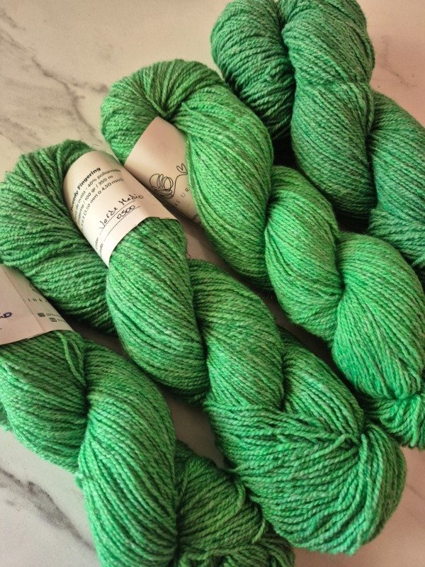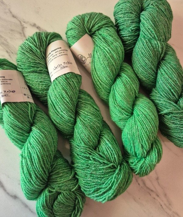 Esta base es un mix de lana y poliamida. Lo que le da el aspecto de un hilado tweed. En este caso, debes tener en cuenta que no es lana merino, sino lana de nuestras Pampas. No es para usar como primera piel. Pero si te la recomiendo para sweaters, pullovers y cardigans. Para todo tipo de ropa de abrigo. Vas a encontrar múltiples colores sólidos y mini madejas para tejer colorwork, si fuera tu elección. Su composición es 60% lana y 40 % poliamida. Es un título 2/7, cuenta con 12 a 13 wpi. Rinde 350 metros en 100 gramos. Es decir que es un fingering pesado. La vas a encontrar en la sección oulet porque hay una cantidad limitada de madejas que iré tiñendo hasta agotar stock. Presentación es por madejas de 100 gramos.