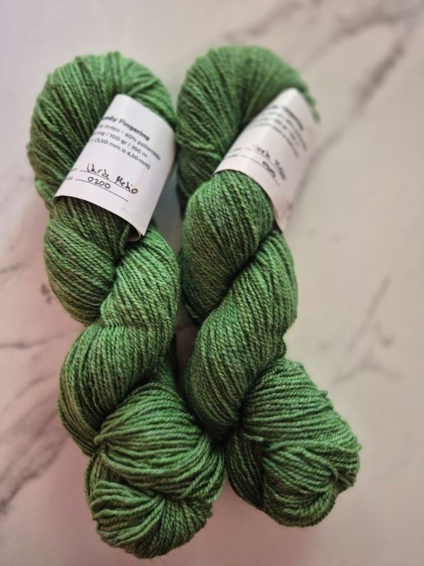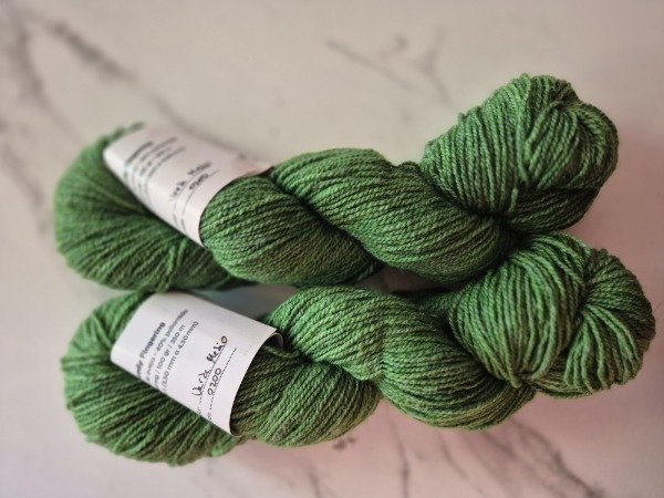 Esta base es un mix de lana y poliamida. Lo que le da el aspecto de un hilado tweed. En este caso, debes tener en cuenta que no es lana merino, sino lana de nuestras Pampas. No es para usar como primera piel. Pero si te la recomiendo para sweaters, pullovers y cardigans. Para todo tipo de ropa de abrigo. Vas a encontrar múltiples colores sólidos y mini madejas para tejer colorwork, si fuera tu elección. Su composición es 60% lana y 40 % poliamida. Es un título 2/7, cuenta con 12 a 13 wpi. Rinde 350 metros en 100 gramos. Es decir que es un fingering pesado. La vas a encontrar en la sección oulet porque hay una cantidad limitada de madejas que iré tiñendo hasta agotar stock. Presentación es por madejas de 100 gramos.